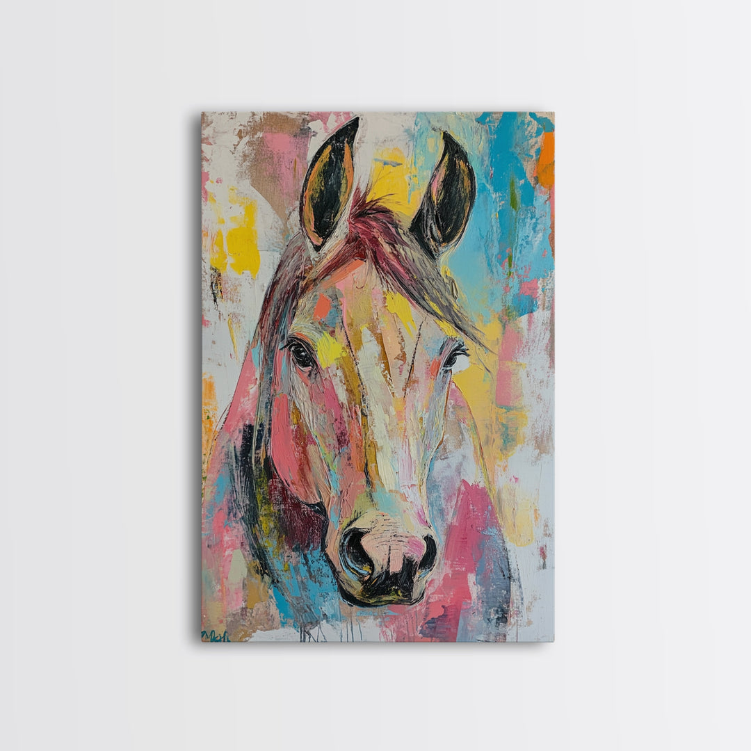 Abstract Horse Art Framed Canvas Print Colorful Western Wall Art, Bull and Bear Art, Moody Art, Farmhouse Art, Rustic Wall Art