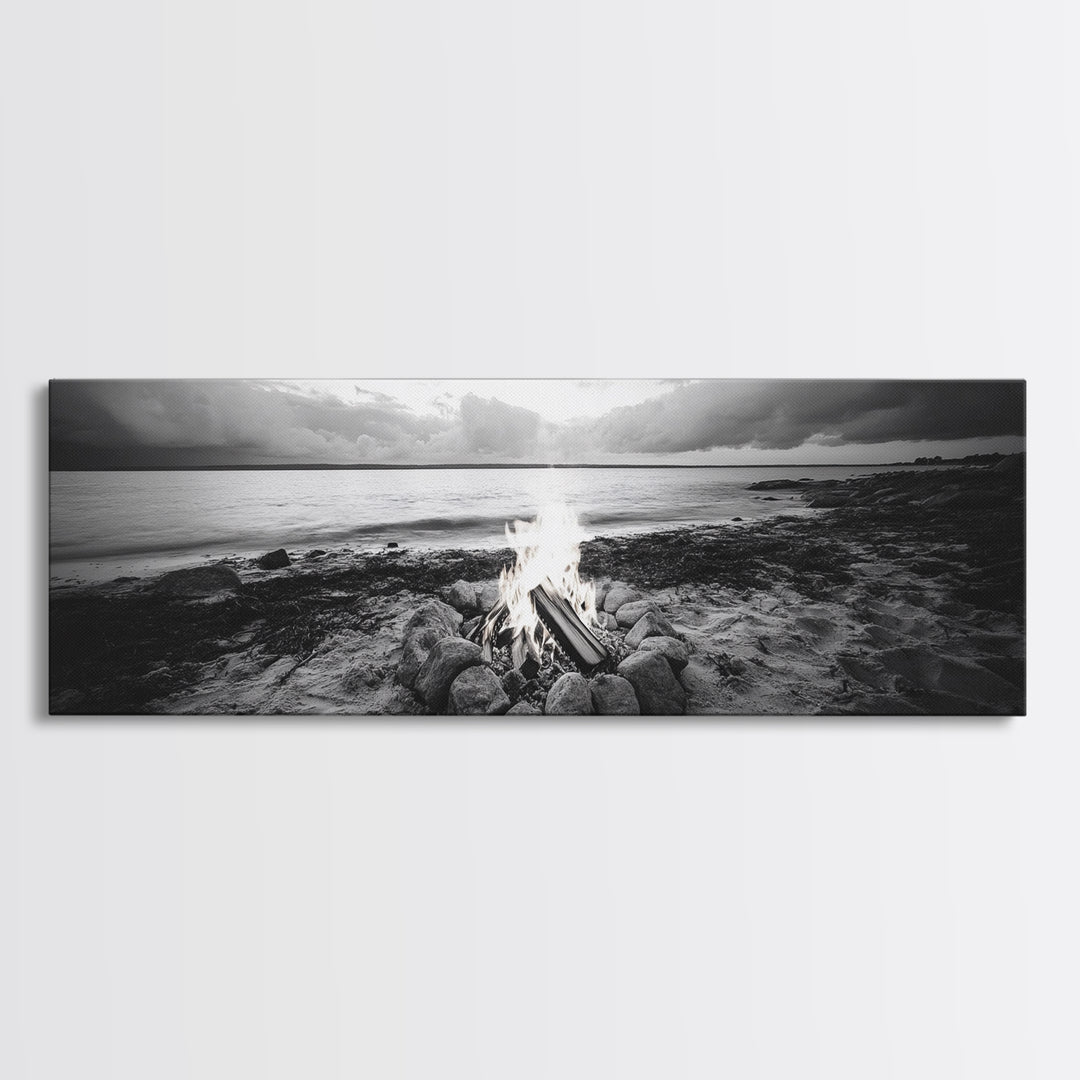Campfire Circle, Shoreline Fire, Beach Rocks, Autumn Mood, Canvas Print, rustic Fall art, outdoor living decor, lakeside art, coastal art