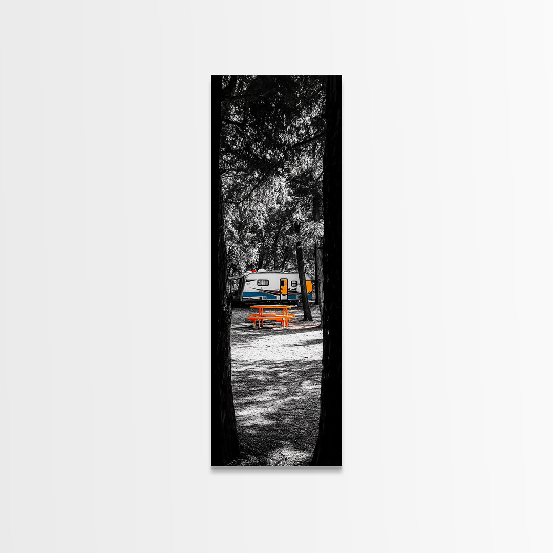 Camper Life, Autumn Picnic, RV Camping Scene, Framed Canvas Print, Rustic Travel Decor, Nature Wall Art, Adventure Home Style