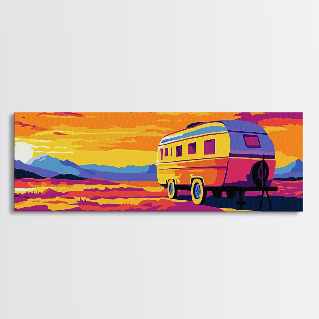 Camper, vintage Christmas, retro art, southwest wall art, extra wide art, gift idea for her, pink orange wall art, Canvas Print