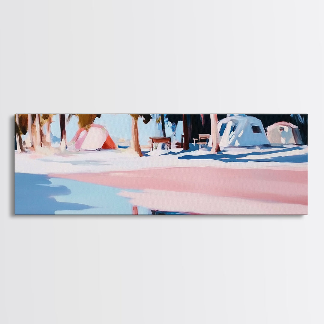 Camping Scene, Nature Landscape, Outdoor Adventure Art, Framed Canvas Print, Rustic Cabin Decor, National Park Wall Art, Minimalist Art