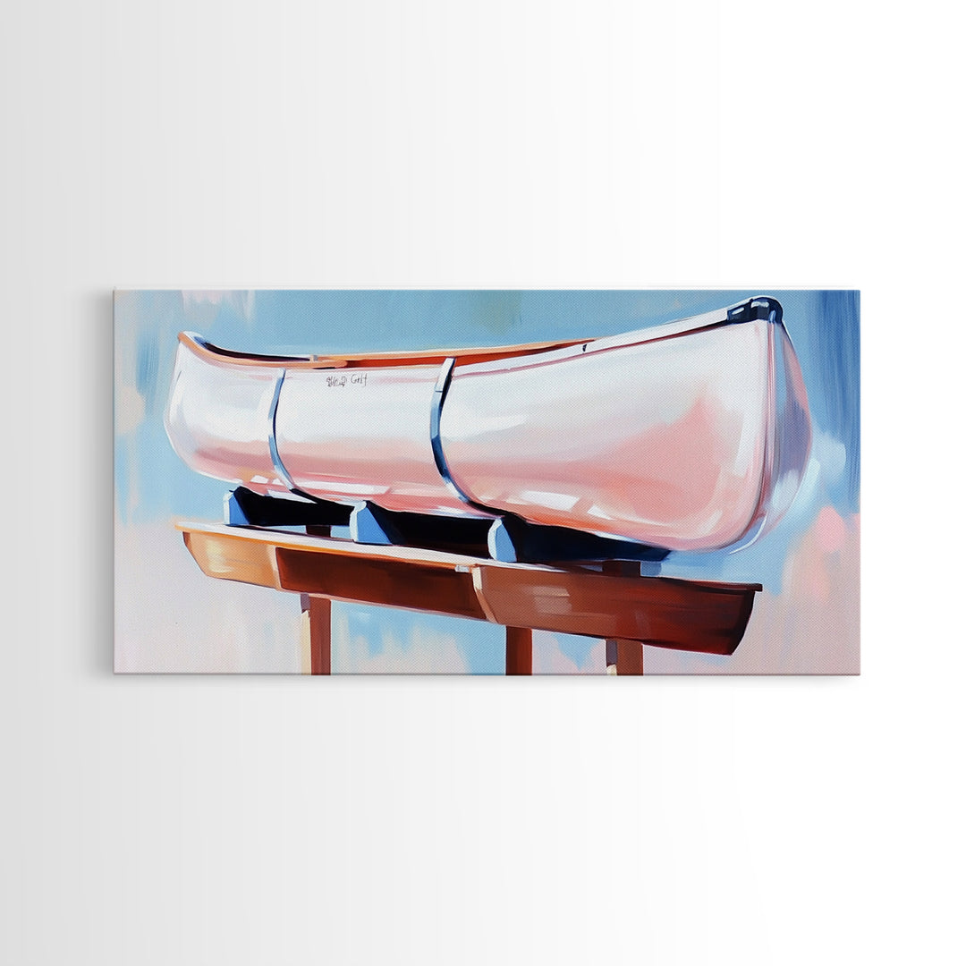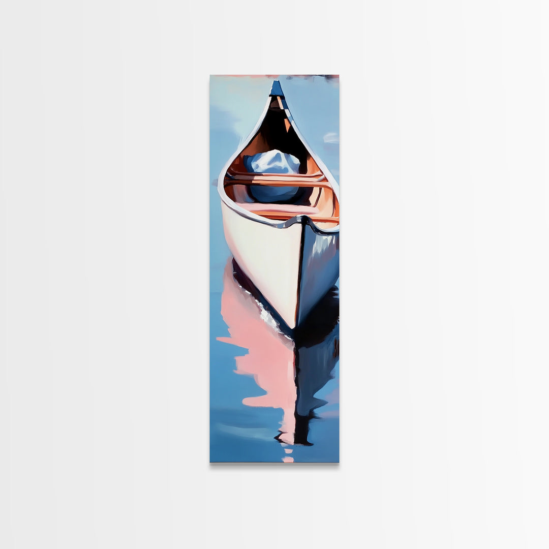 Canoe on Water, peaceful lake scene, wilderness art, adventure painting, modern minimalism, nature lover’s decor, framed canvas print