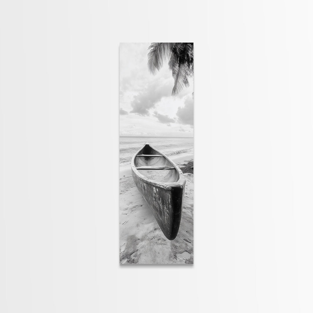 Canoe Shoreline, Island Escape, Tropical Minimalist, Ocean Mood, Framed Canvas Print, Beach House Decor, Bathroom Print, Hallway Wall Art