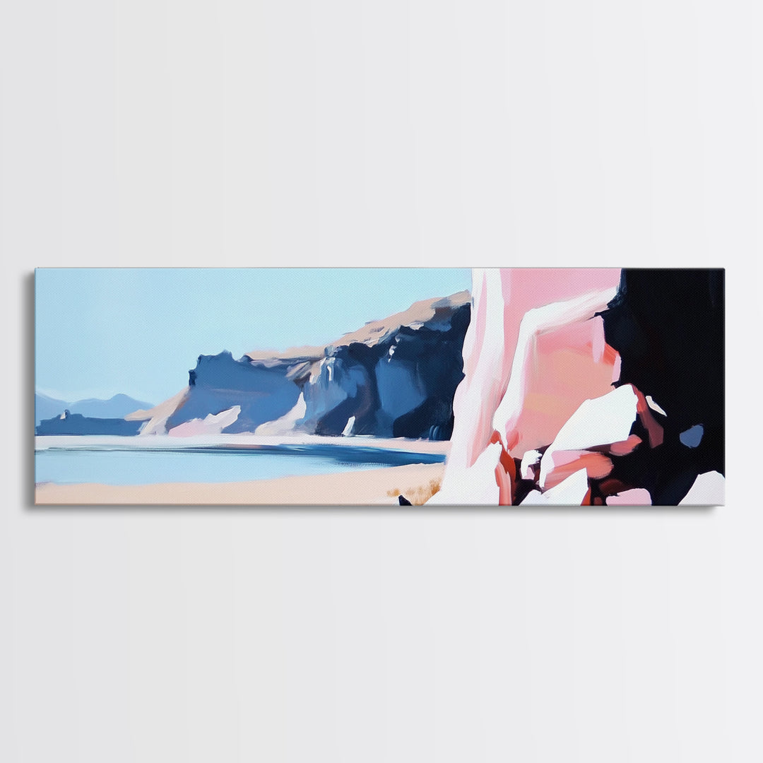 Canyon Cliffs, Ocean View, Sunset Water, Framed Canvas Print, Vibrant Landscape Wall Art, Office or Entryway Nature Decor