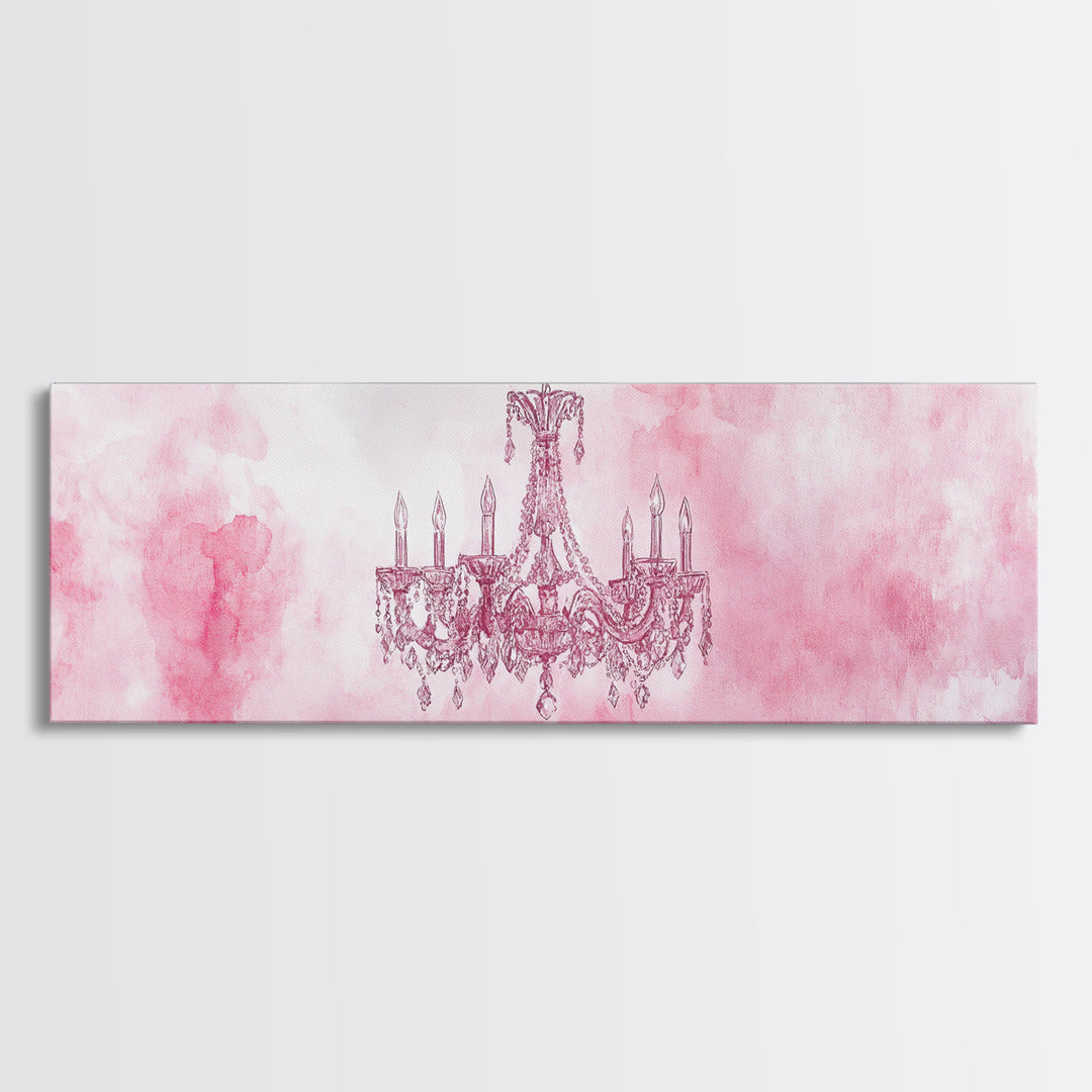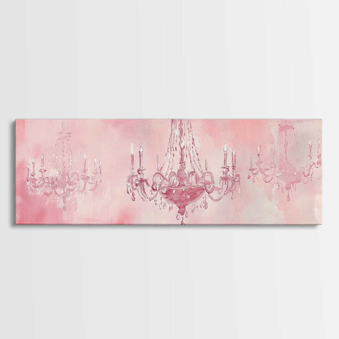 Chandelier Canvas Print, Light Pink Wall Art, Elegant Vintage Home Decor, Horizontal Artwork for Living Room, Rustic French Country Art