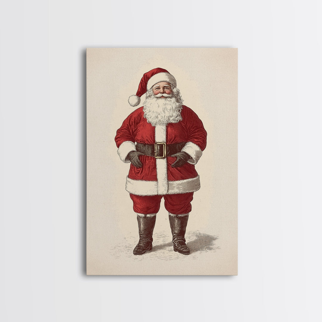 Cheerful Santa Clause Canvas Print - Framed Canvas - Minimalist Christmas Art - Boho Christmas Art - Rustic Christmas Art