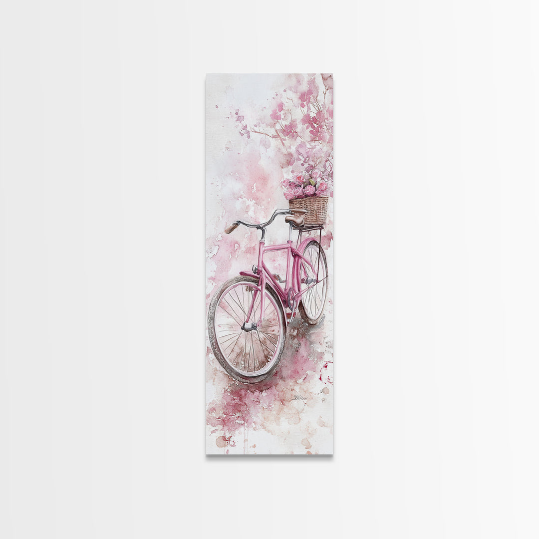 Cherry Blossom Bicycle Canvas Print, Cottagecore Landscape Painting, Rustic Floral Bedroom Art, Above Sofa Art, Coastal Cowgirl Wall Art