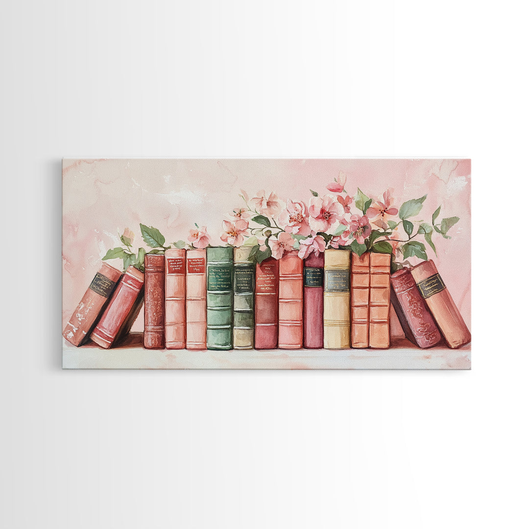 Cherry Blossom Books Canvas Print Cottagecore Wall Art Rustic Decor Above Couch Art Living Room Art Gift Idea Botanical Prints