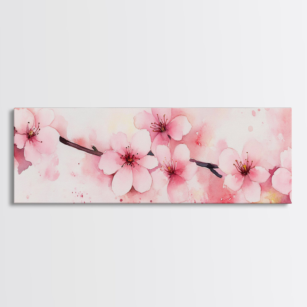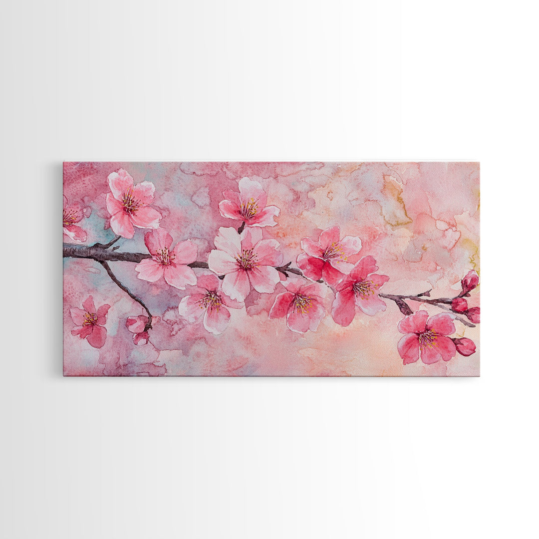 Cherry Blossom Branch Canvas Print | Cherry Blossom Painting, Light Pink Wall Art, Nature-Inspired Decor, Botanical Prints, Bedroom Art