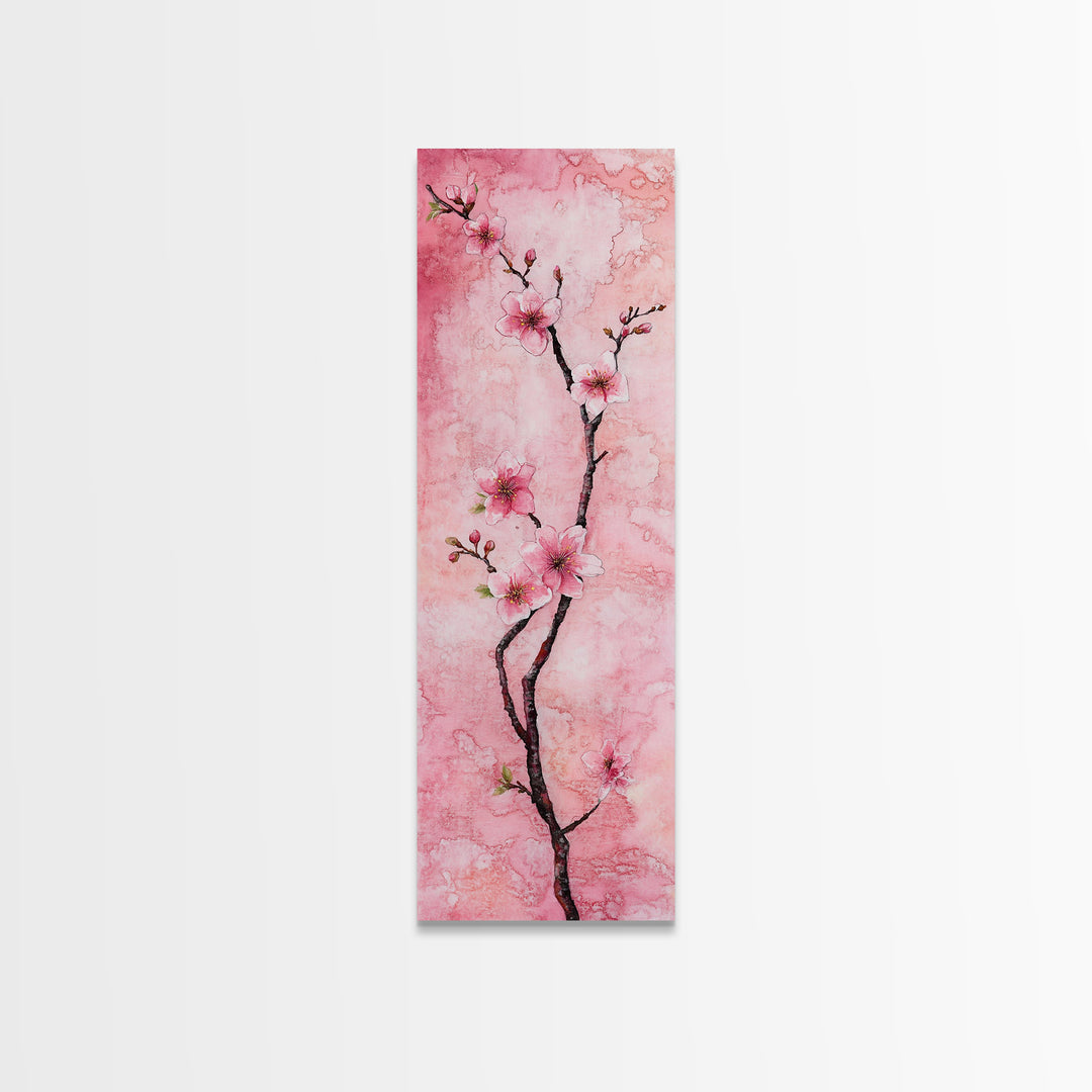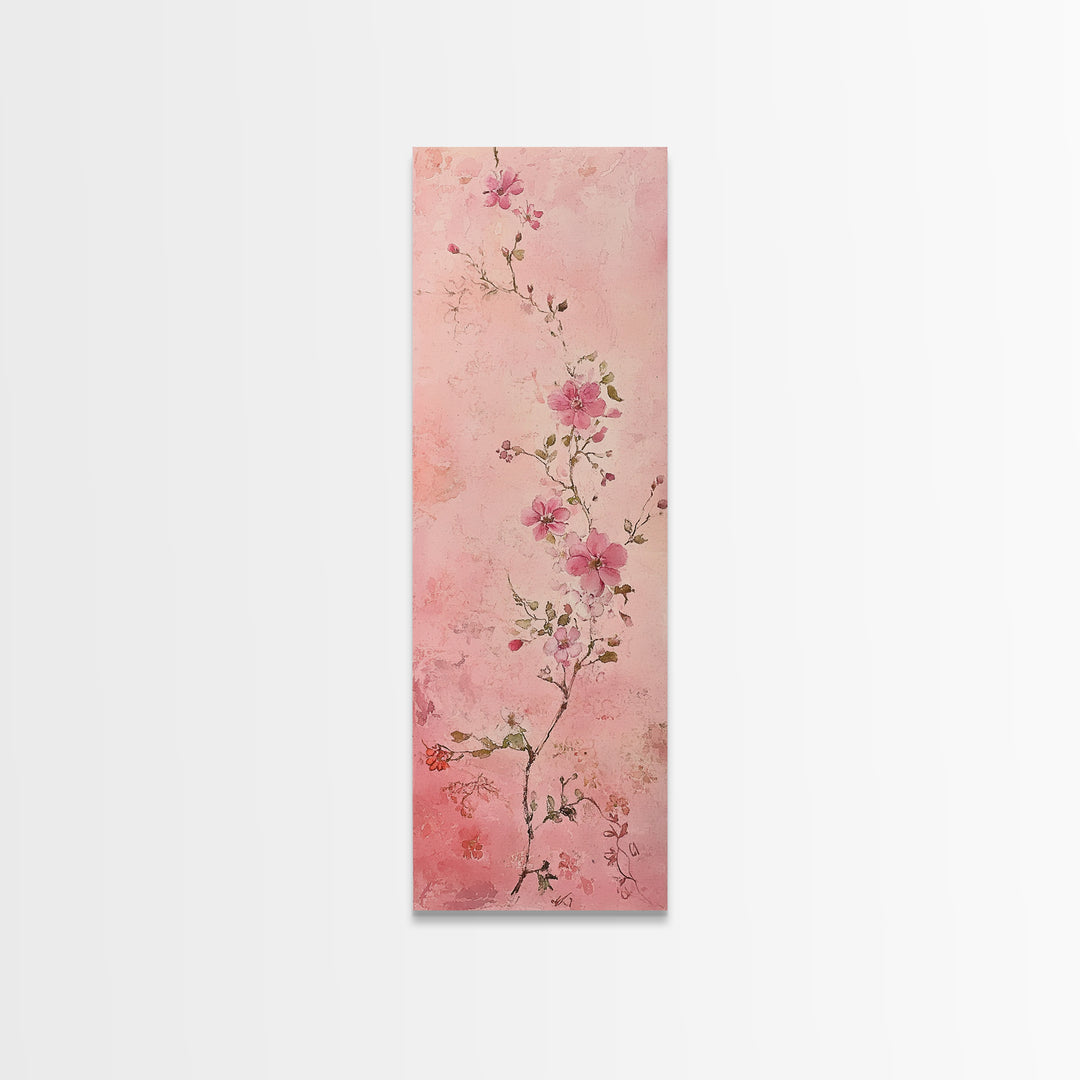 Cherry Blossom Floral Canvas Print Light Pink Wall Art Tall Skinny Vertical Art Cottagecore Botanical Print Bedroom Decor