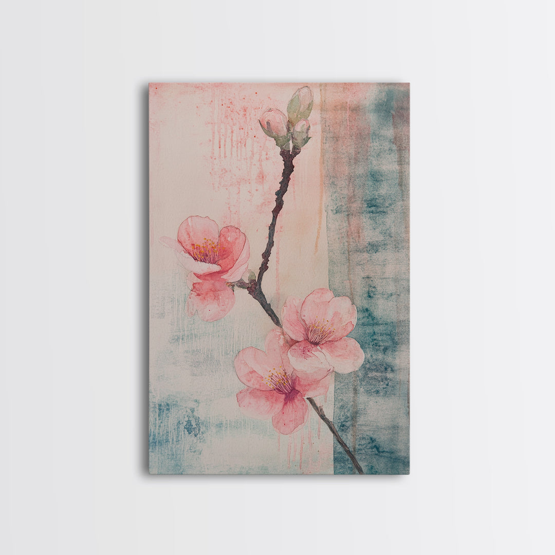 Cherry Blossom Canvas Print Floral Wall Art Japanese Botanical Prints Bedroom Decor Light Pink Artwork Cottagecore Gift Idea