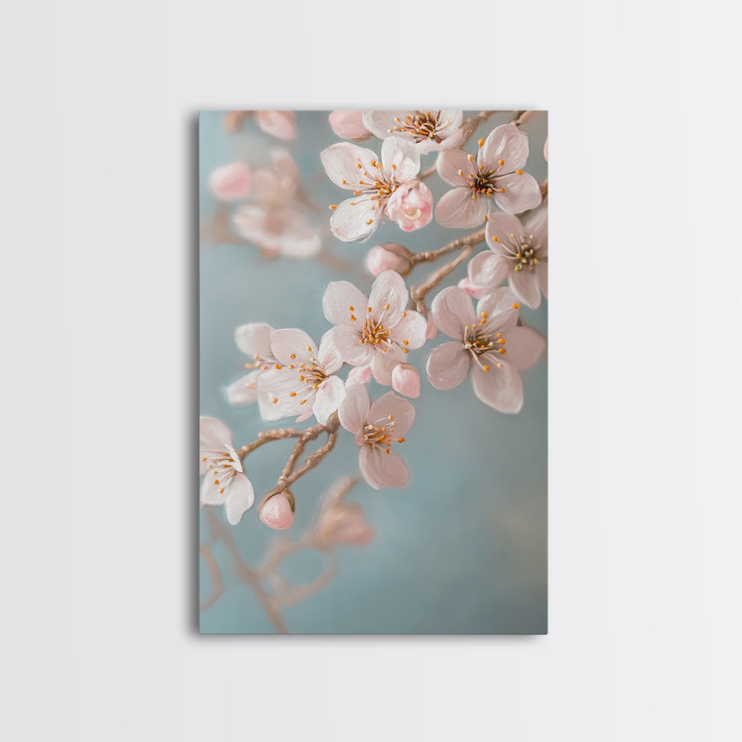 Cherry Blossom Canvas Print, Botanical Framed Canvas Art, Light Pink Wall Art, Bedroom or Guest Room Art, Feminine Nature-Inspired Decor