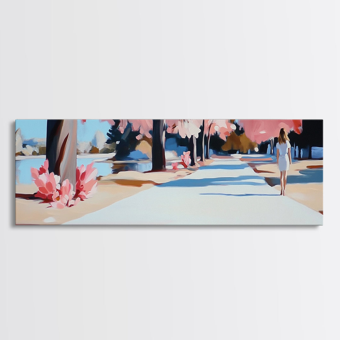 Cherry Blossom Path, Romantic Walkway, Springtime Art, Canvas Print, Soft Floral Wall Art, Dreamy Pastel Tones, Bedroom Decor