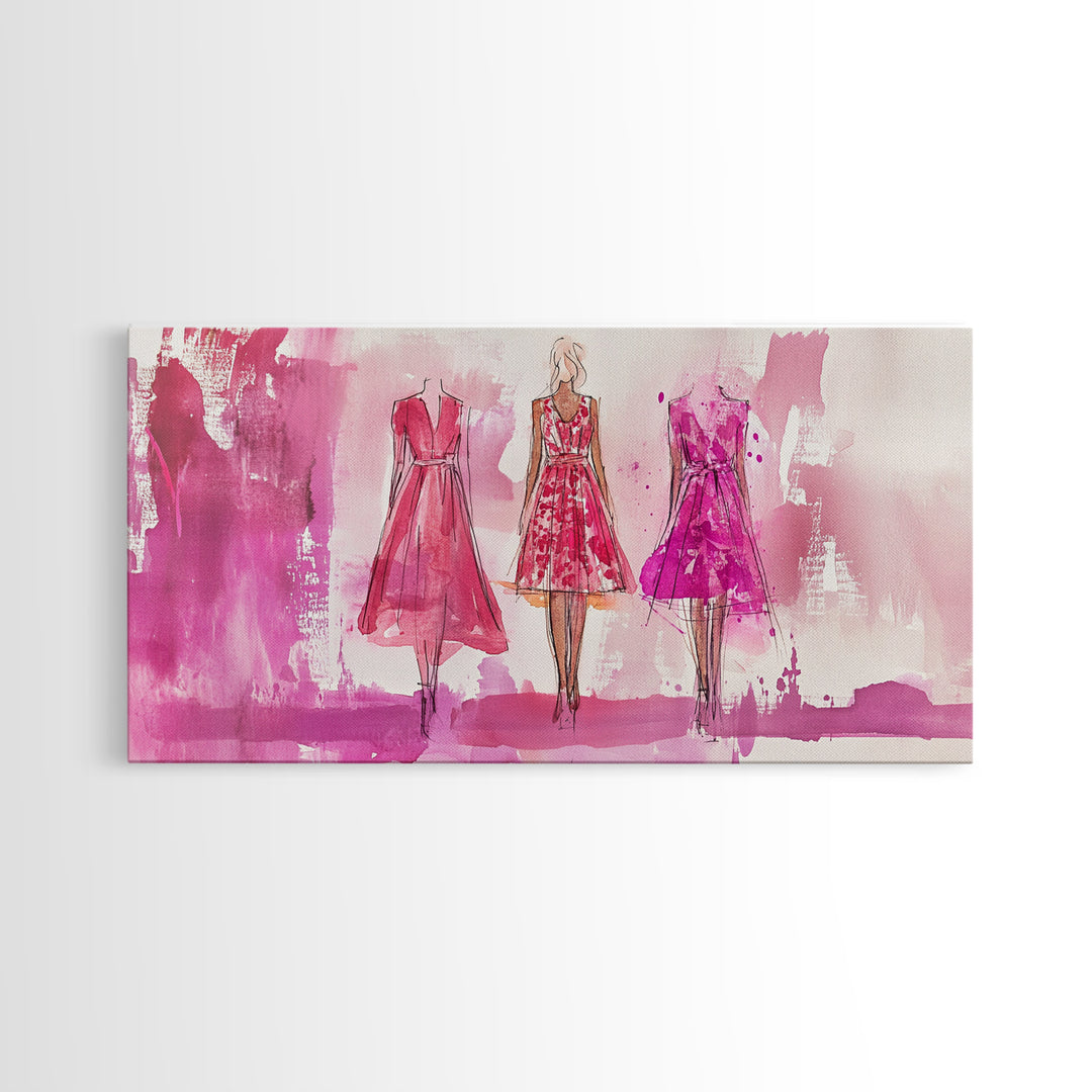 Chic Pink Dress Canvas Print | Fashion Inspired Artwork | Retro Pink Abstract Wall Art | Bedroom or Boutique Framed Decor | Trendy Art