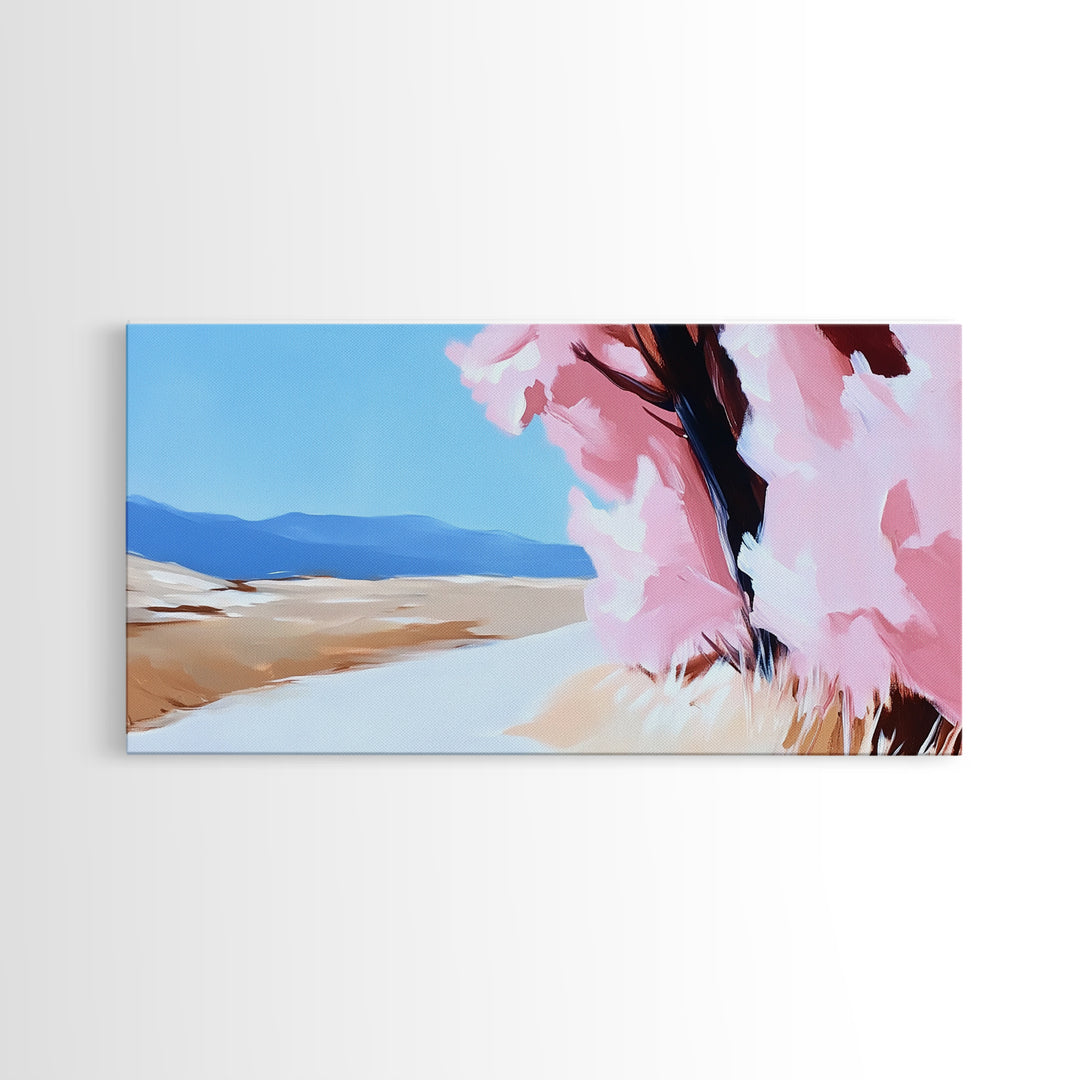 Cherry Blossoms, Spring Landscape, Framed Canvas Print, Dreamy Nature Art, Pastel Wall Decor, Cottagecore Aesthetic, Bedroom Wall Art