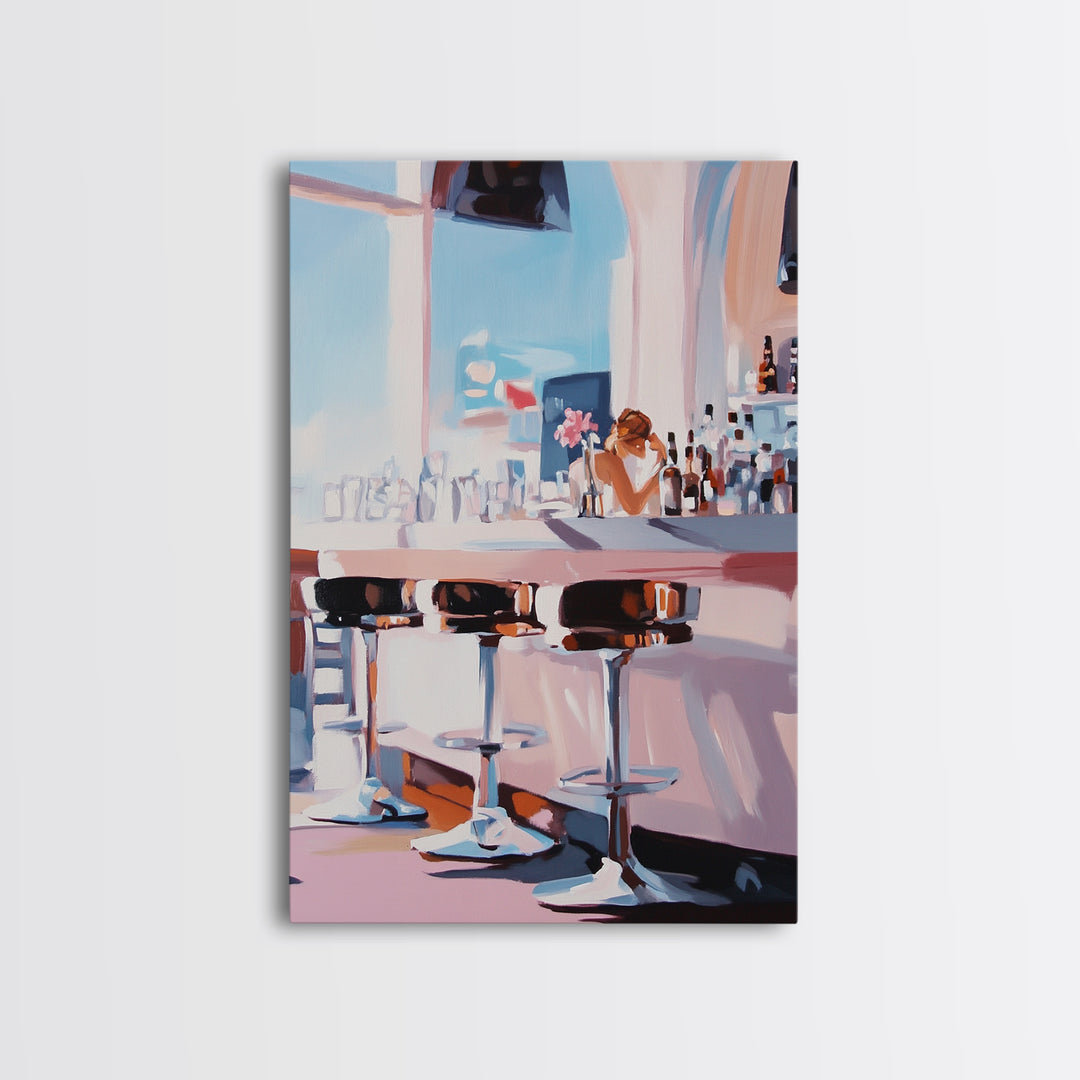 Chic Bar Scene, Modern Art, Cozy Atmosphere, Framed Canvas Print, Minimalist Wall Art, Contemporary Home Decor, Dining Room Artwork