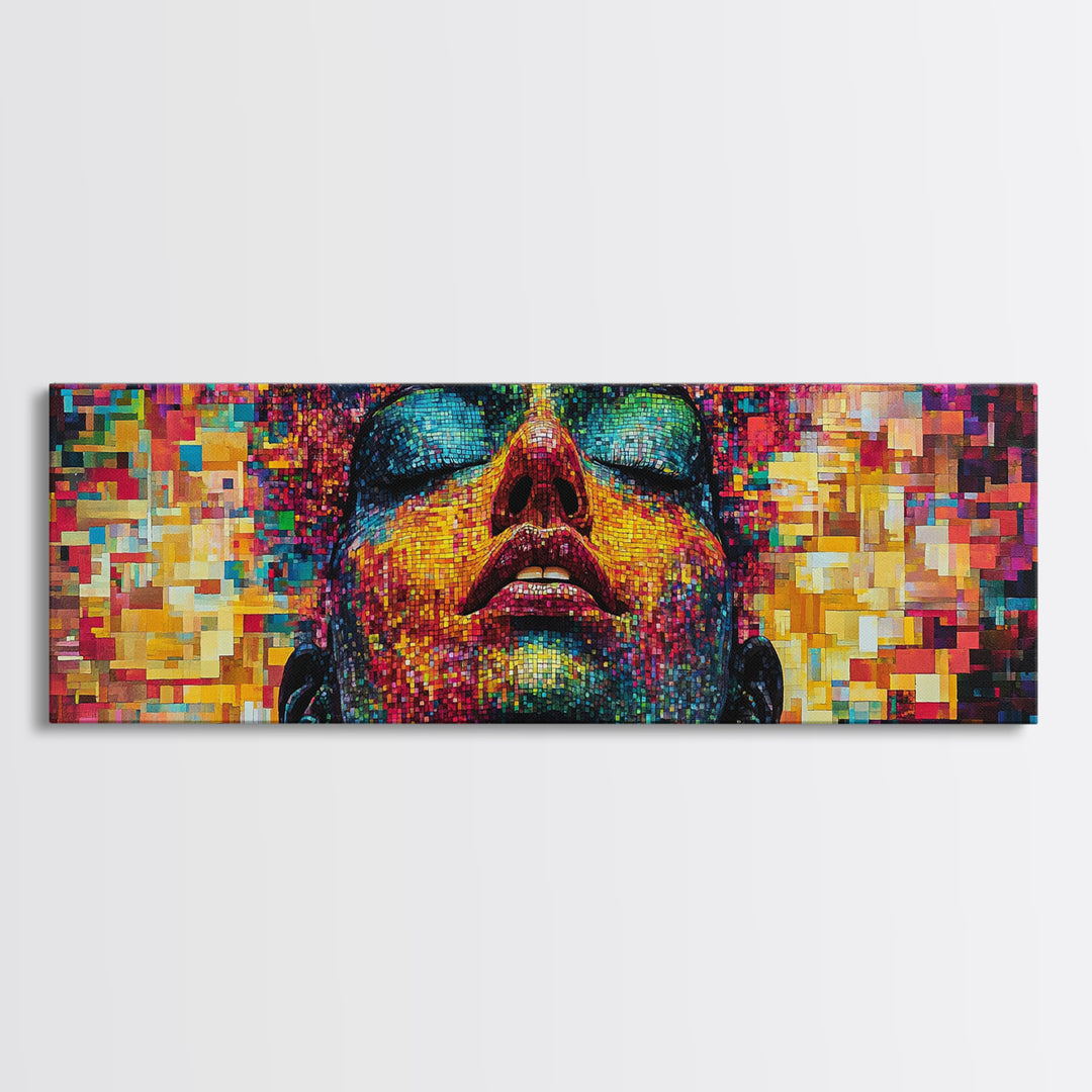 Abstract Mosaic Woman Framed Canvas Print - Vibrant Afrocentric Art for Living Room, Pink Orange Wall Art, Colorful Bedroom Decor, Gift Idea
