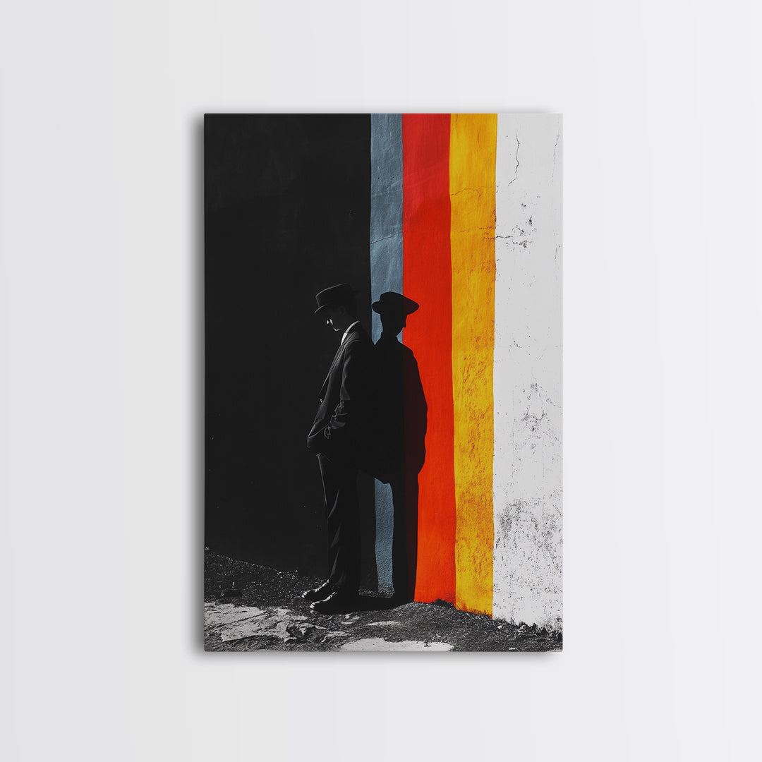 Abstract Man, Shadow Colors, Noir Style, Framed Canvas Print, Office Wall Art, Modern Minimalist Decor, Bold Color Accent Artwork