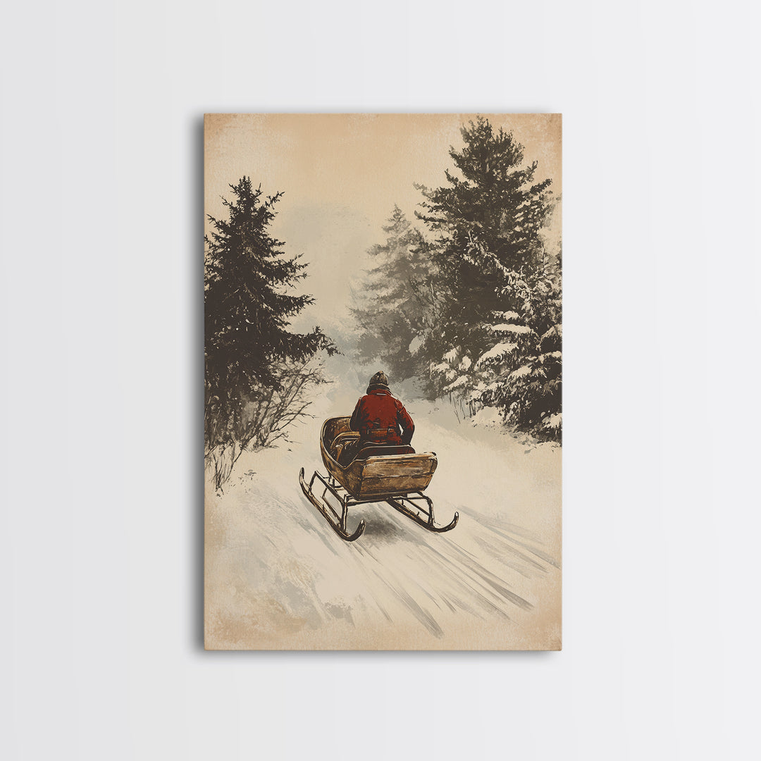 Christmas Sleigh Ride Canvas Print - Framed Canvas - Minimalist Christmas Art - Boho Christmas Art - Rustic Christmas Art