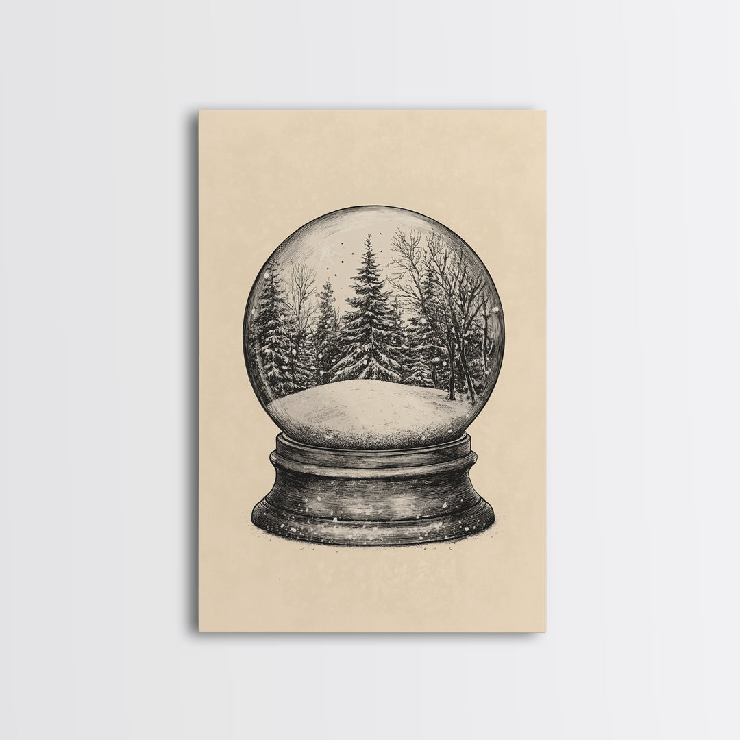 Christmas Snowglobe Canvas Print - Framed Canvas - Minimalist Christmas Art - Boho Christmas Art - Rustic Christmas Art
