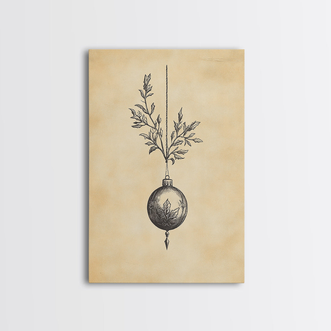 Christmas Tree Ornament Painting Print, Boho Christmas Wall Art, Framed Canvas