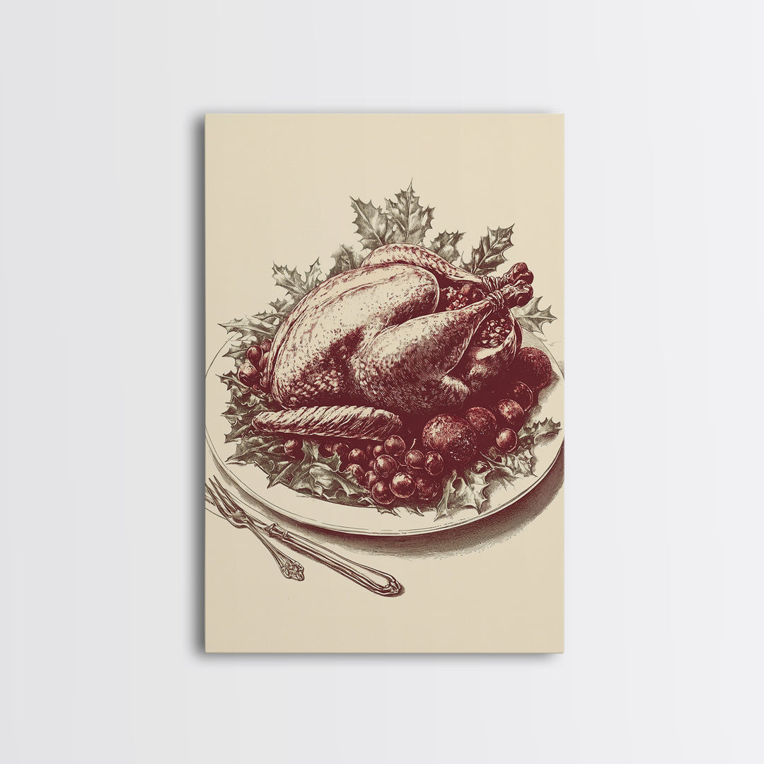 Christmas Turkey Canvas Print - Framed Canvas - Minimalist Christmas Art - Boho Christmas Art - Rustic Christmas Art