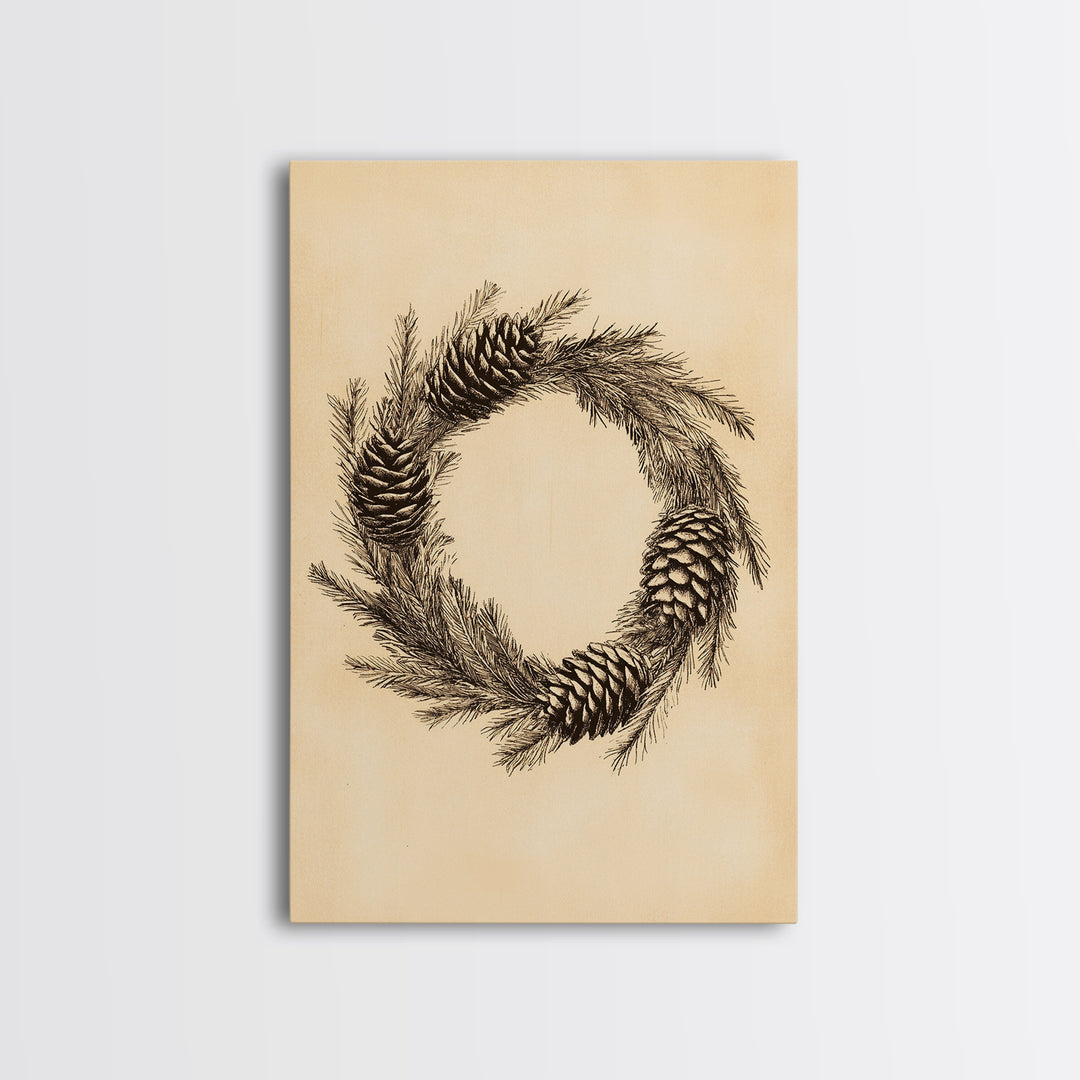 Christmas Wreath Canvas Print - Framed Canvas - Minimalist Christmas Art - Boho Christmas Art - Rustic Christmas Art