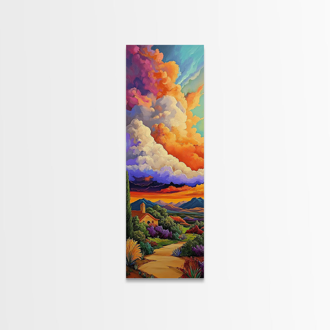 Church Sunset, Mountains, Framed Canvas Print, Autumn Landscape Wall Art, Rustic Living Room Decor, Colorful Fall Countryside Scene