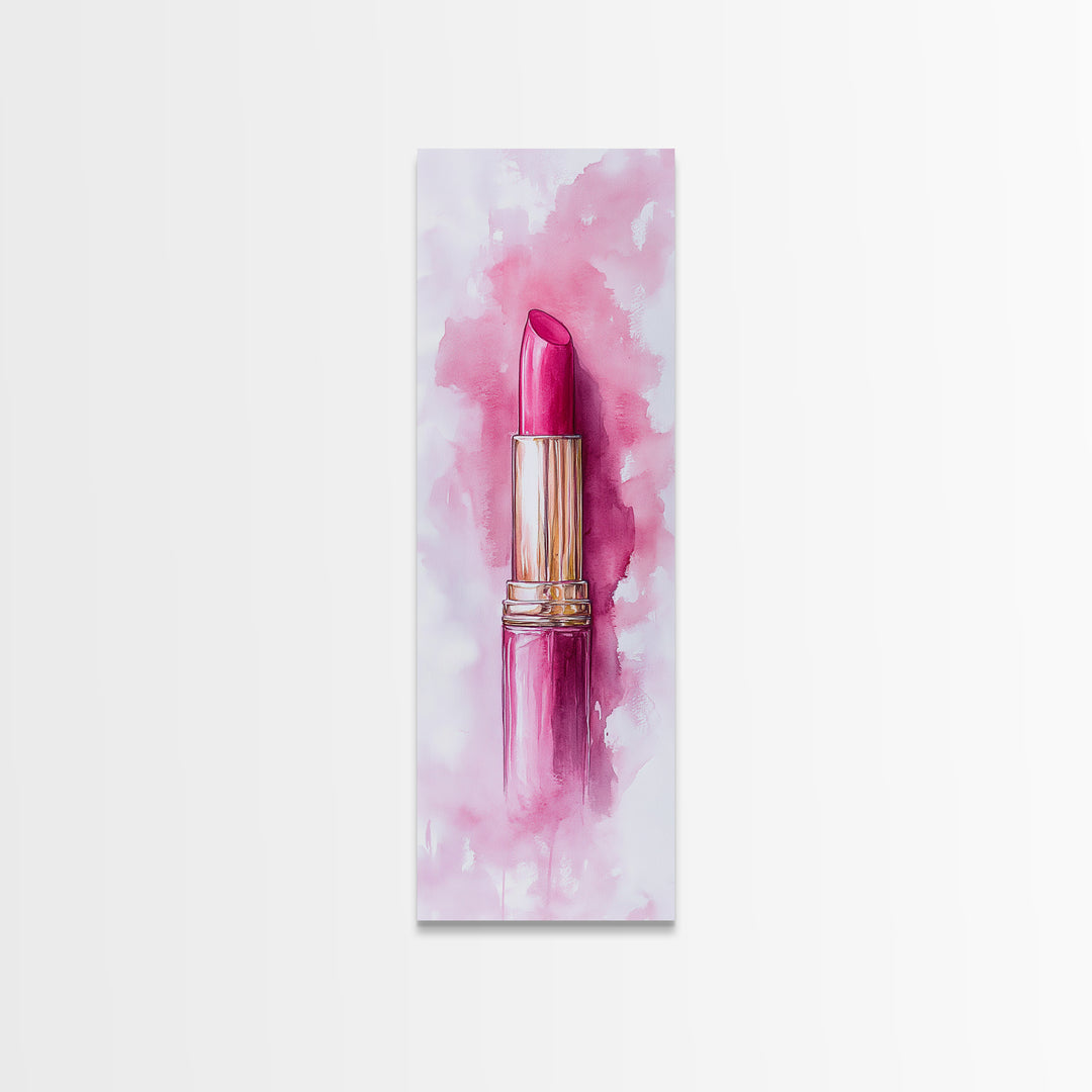 Classic Pink Lipstick Canvas Print Feminine Wall Art Makeup Lover Gift Light Pink Rustic Decor Vertical Artwork Girly Aesthetic