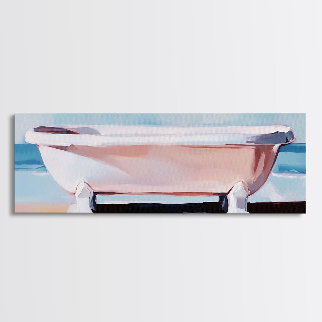 Clawfoot Tub, Coastal Art, Bathroom Wall Art, Modern Decor, Minimalist Painting, Ocean Art, Beach House, Framed Canvas Print