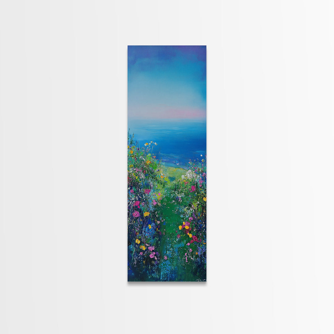 Cliffside Wildflowers, Coastal Landscape Art, Cottagecore Wall Art, Blue and Green Wall Art, Floral Art, Canvas Print,