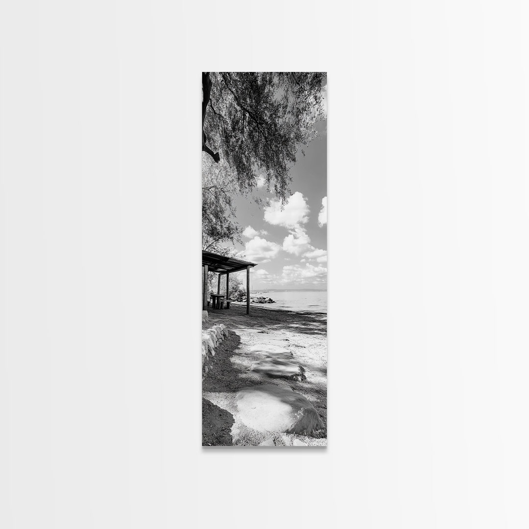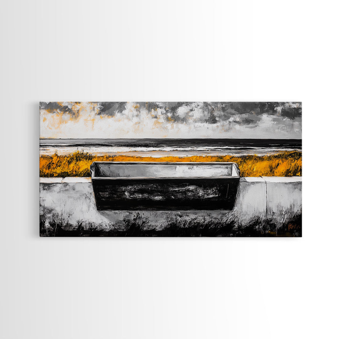 Coastal Bench, Ocean Peace, Nature Retreat, Minimal Landscape, Canvas Print, Zen Wall Art, Bedroom or Entryway Decor, Calm Beach Scene