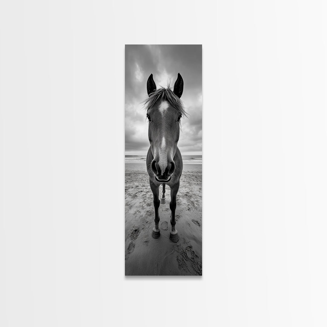 Coastal Beach Horse, Canvas Print, Vintage Horse Art, Rustic Wall Art, Tall Narrow Art, Moody Landscape Painting, Farmhouse Decor