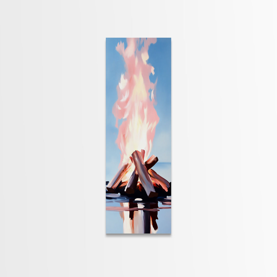 Coastal Bonfire, modern boho wall art, summer night painting, abstract flame decor, cottagecore aesthetic, framed canvas print