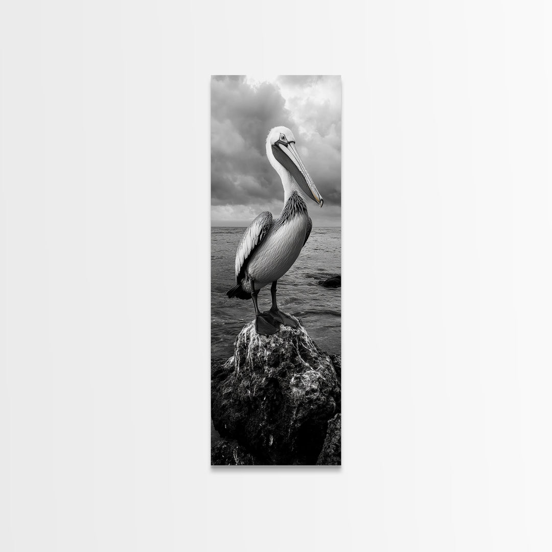 Coastal Bird Portrait, Black White Art, Nature Print, Minimalist Style, Living Room Wall Decor, Framed Canvas Print, Beach House Art
