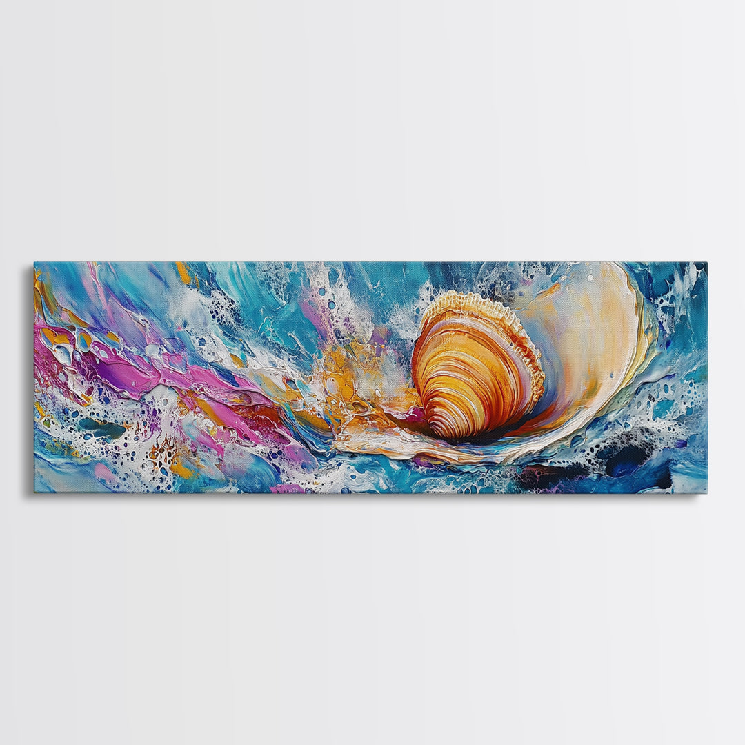 Abstract Ocean Wave Painting Coastal Beach Wall Art Colorful Sea Shell Artwork Nautical Home Decor Canvas Print
