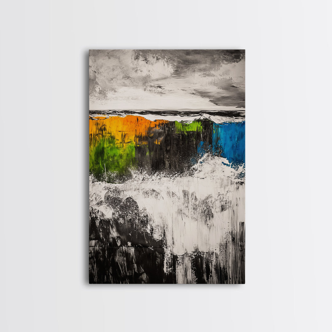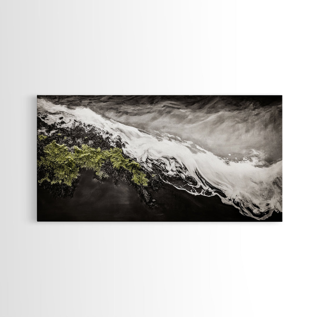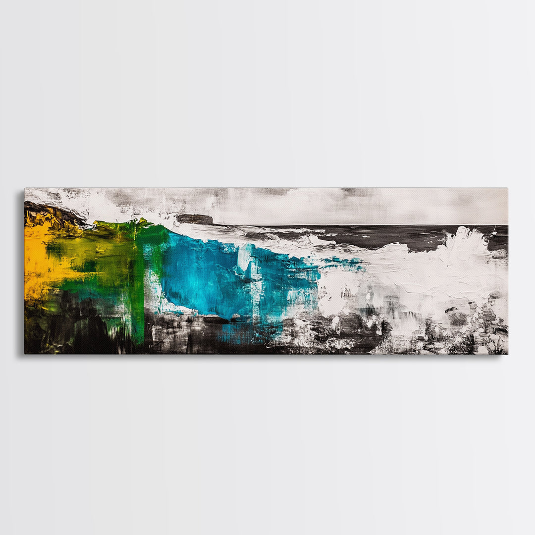 Abstract Ocean View, Blue Green Black White, Coastal Wall Art, Modern Beach Home Decor, Bold Statement Painting, Office Art, Canvas Print
