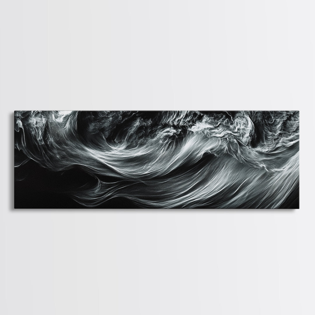 Abstract Ocean Waves, Coastal Wall Art, Modern Seascape Painting, Monochrome Beach Decor, Minimalist Black White Art, Canvas Print