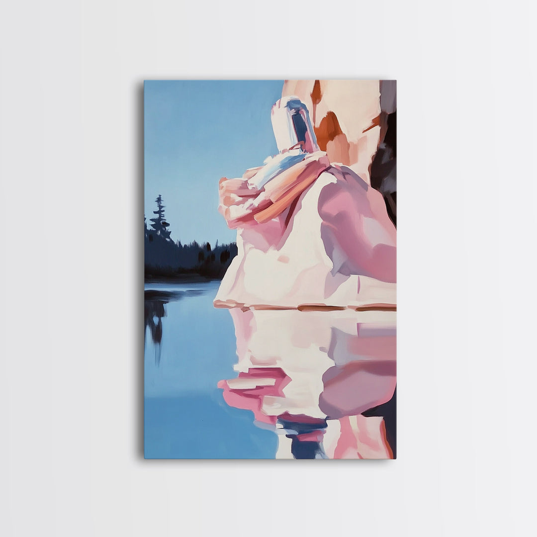 Coastal Escape, Soft Color Landscape, Feminine Art, Minimalist Design, Beach Inspired, Framed Canvas Print, Bedroom Wall Art
