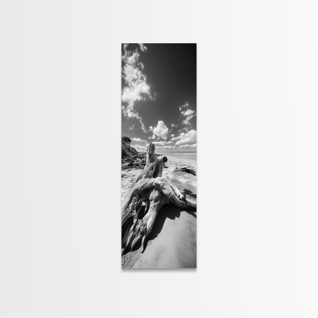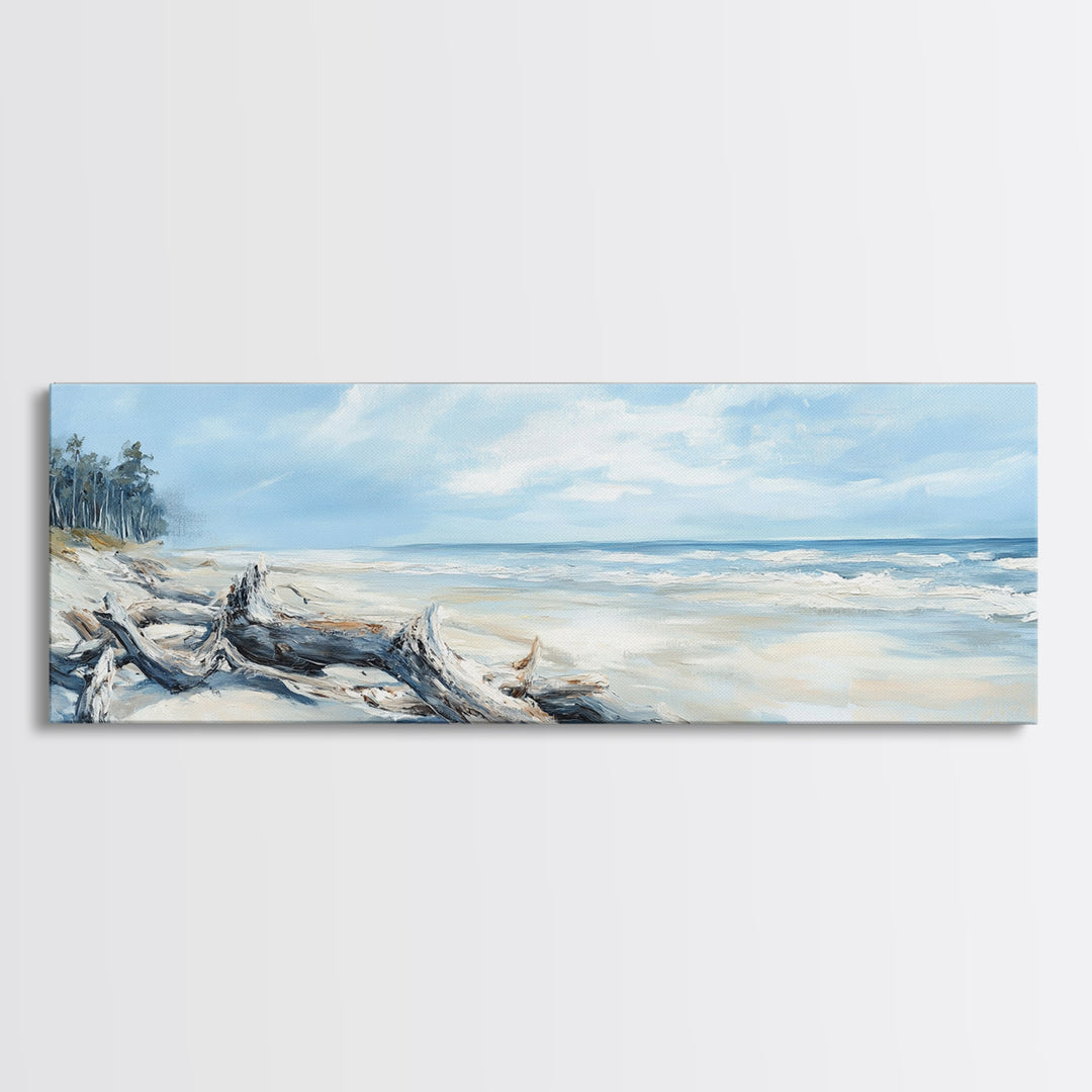 Coastal Driftwood, Sandy Beach, Ocean View, Rustic Style, Canvas Print, Fall Wall Art, Bathroom Decor, Nature Photography Art