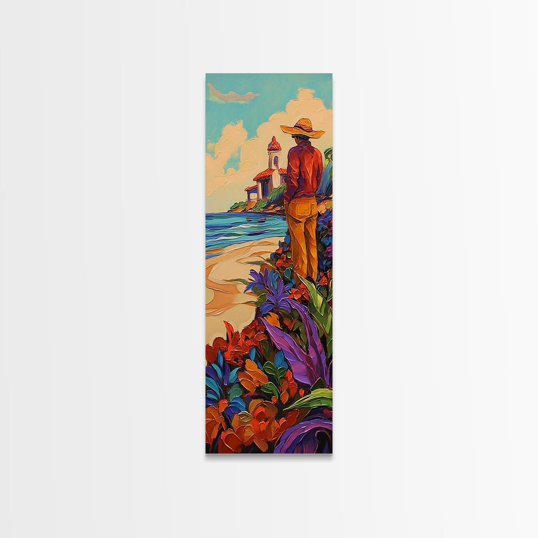 Coastal decor, framed canvas print, extra wide art, nautical wall art, beach road painting, rustic landscape, panoramic art