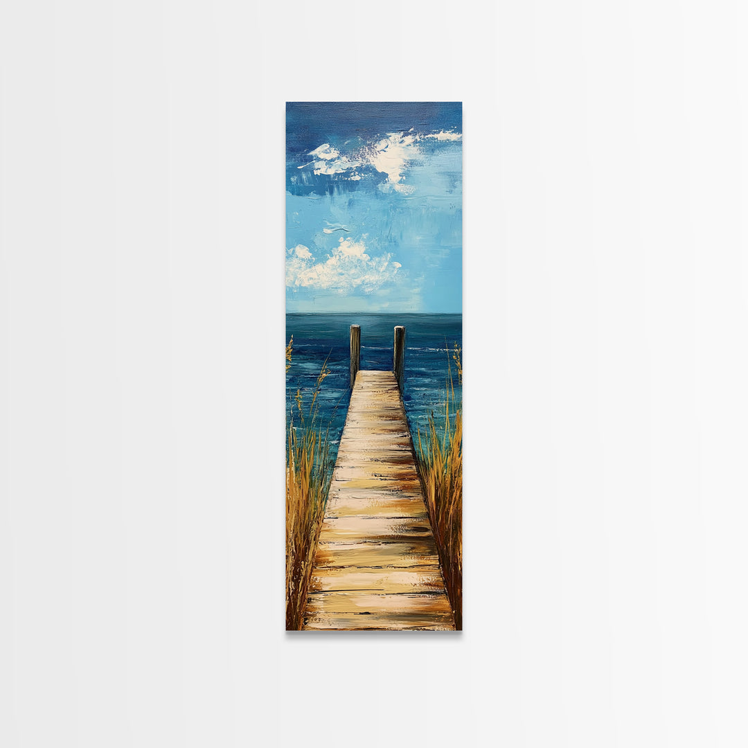 Coastal Dock Painting Framed Canvas Print coastal painting nautical wall art coastal decor seascape painting rustic wall art bedroom art