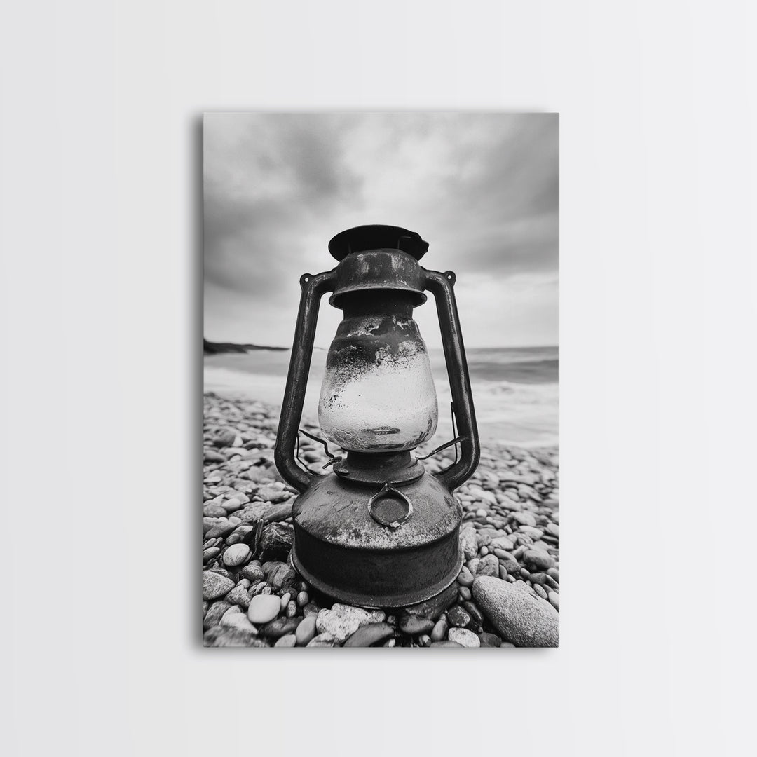 Coastal decor, vintage lantern photography, framed canvas print, rustic art, farmhouse wall art, nautical decor, seascape painting, wabi sabi art