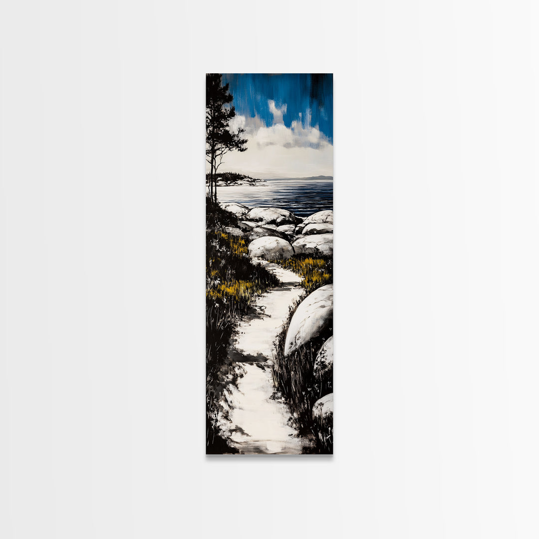 Coastal Landscape, Beach Path Wall Art, Modern Seaside Art, Blue and Black Art, Living Room Decor, Nautical Art, Framed Canvas Print