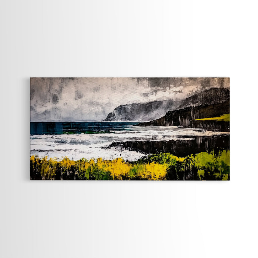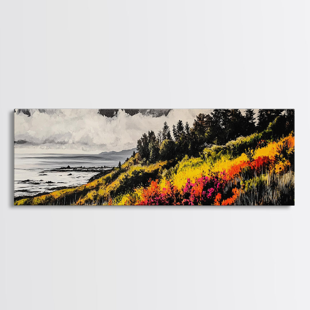 Coastal Landscape, Framed Canvas Print, beach painting, ocean wall art, panoramic painting, extra wide art, above sofa art