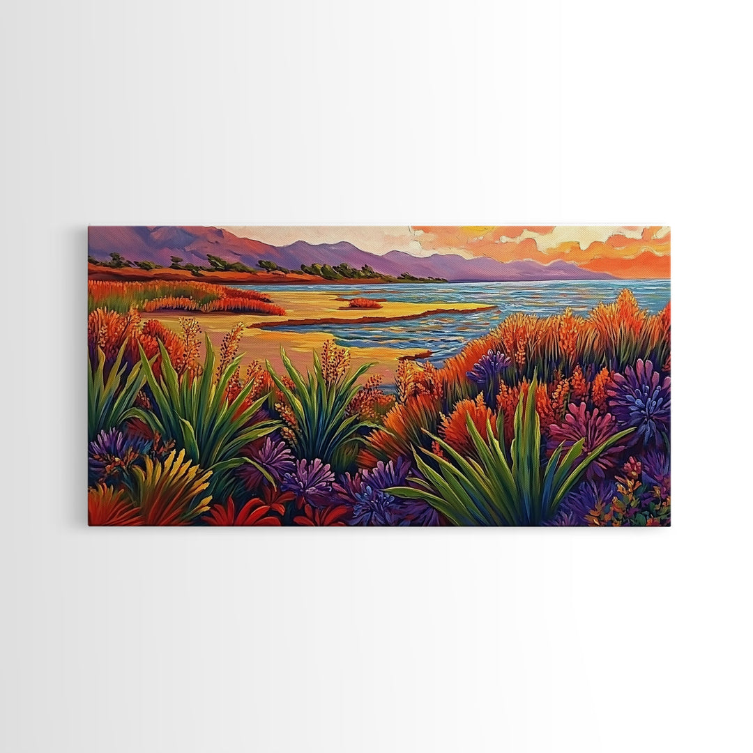 Coastal Landscape, Sunset Nature, Vibrant Fall Colors Canvas Print, Kitchen Wall Art, Nature Inspired Decor, Warm Autumn Sunset Artwork