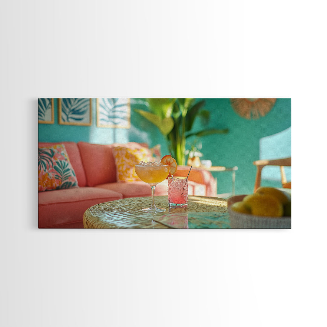 Coastal Lounge Vibes Canvas Print, Relaxing Tropical Decor, Beach House Wall Art, Sunny Living Room Painting, Cottagecore Coastal Art