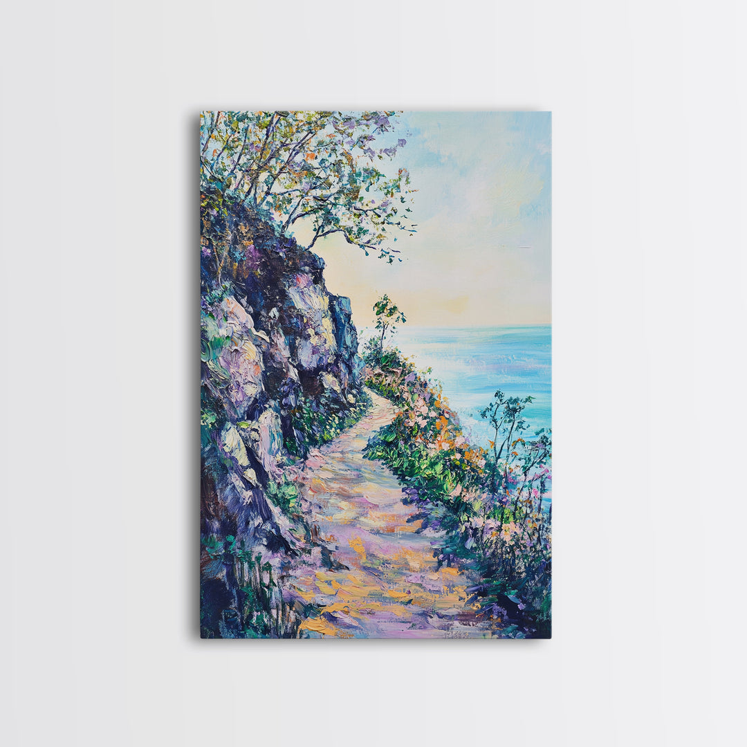 Coastal Path, Nature Landscape, Seaside Art, Framed Canvas Print, Ocean View Painting, Beach Wall Art, Blue Wall Art, Living Room Decor
