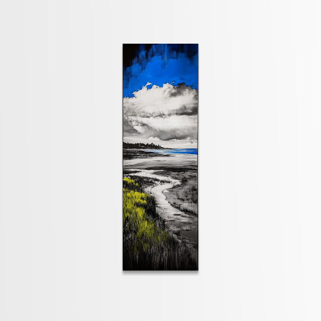 Coastal Marsh, Blue Sky, Canvas Print, Beach House Art, Minimalist Seascape, Ocean Decor, Nature Inspired Artwork, Living Room Art