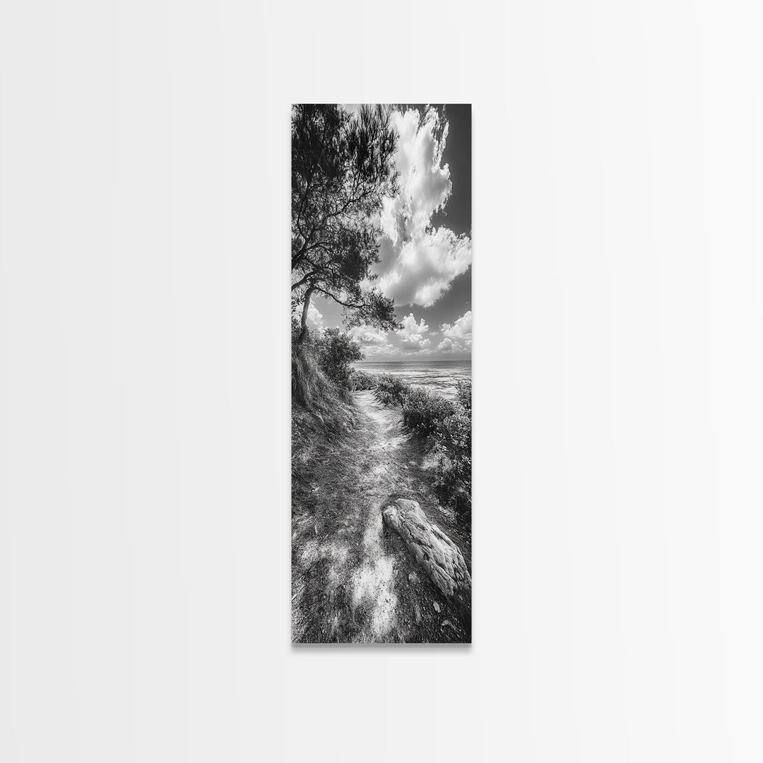 Coastal Nature Trail, Ocean Path View, Tranquil Landscape, Framed Canvas Print, Beach House Art, Bathroom Wall Art, Game Room Wall Art